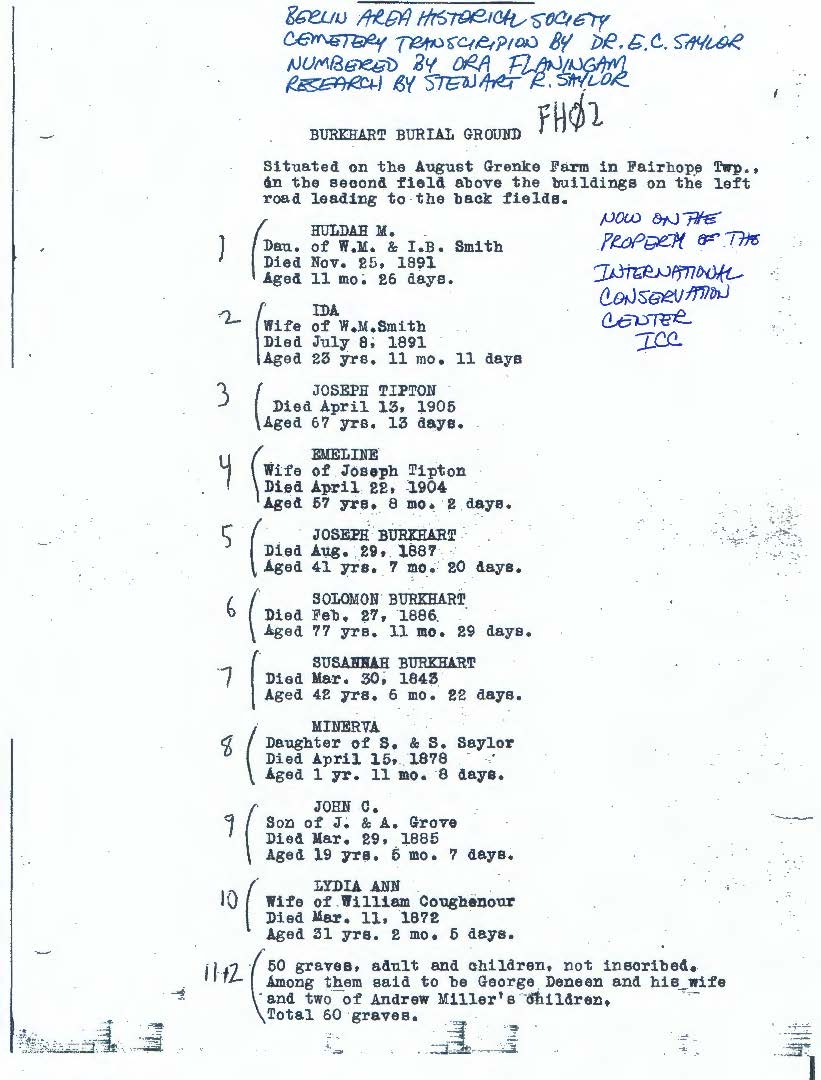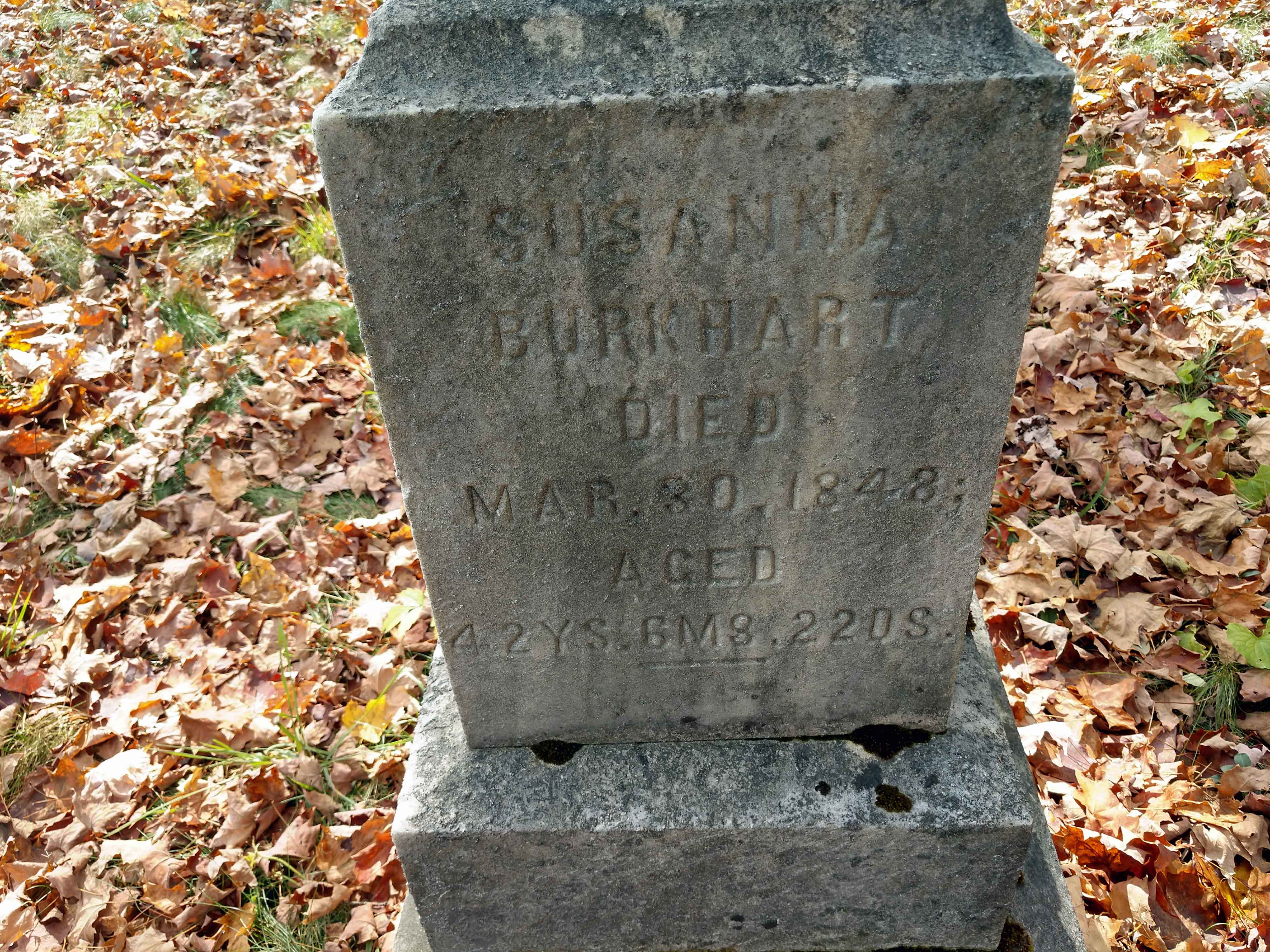 Others buried in the Burkhart graveyard were documented by Dr. E. C, Saylor. I have tried to document their Burkhart connections.