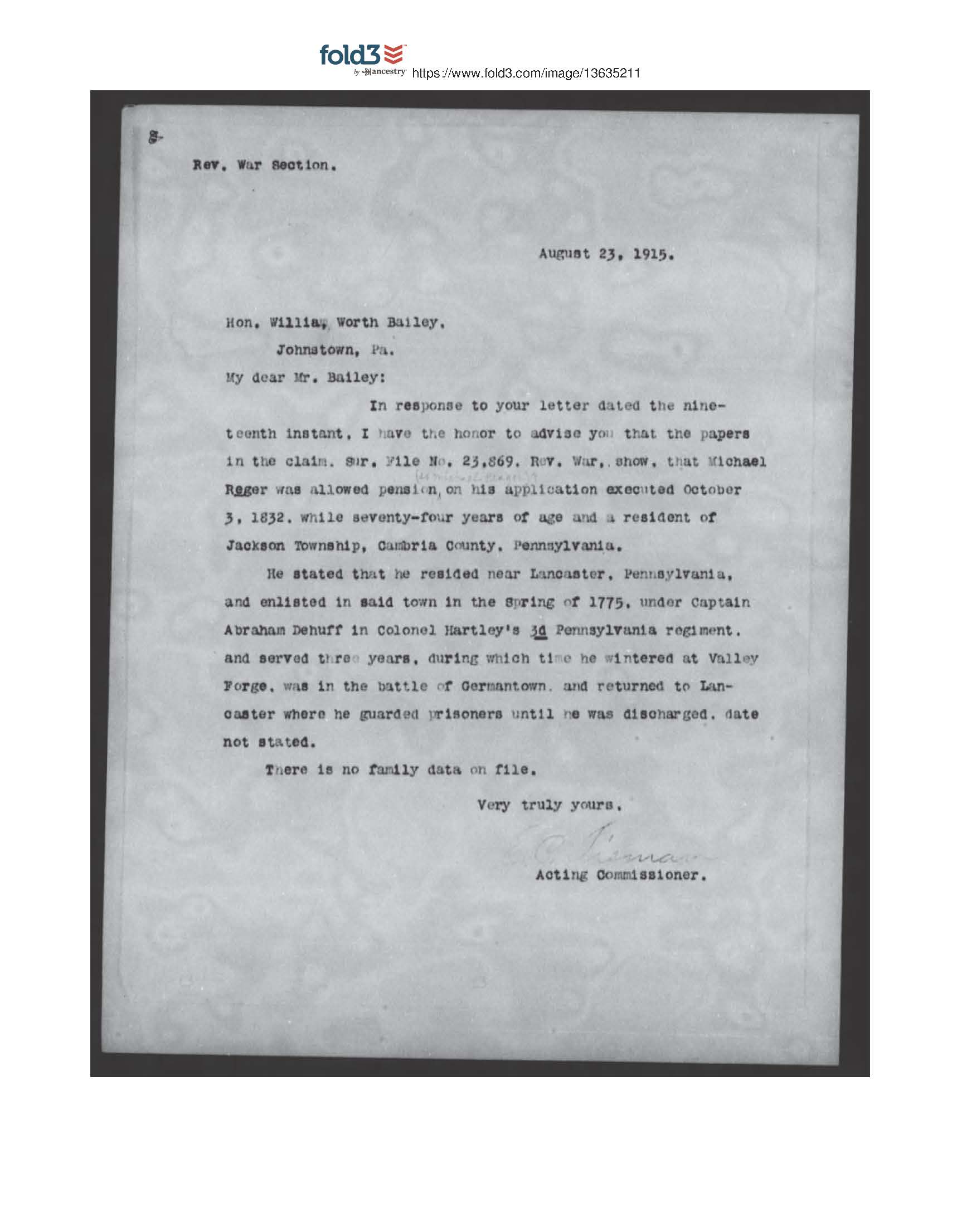 Michael Rager, Mom Saylor's g-g grandfather, enlisted during the spring of 1775 and served for three years, including a winter at Valley Forge. More work to do; but, my first find is interesting.
