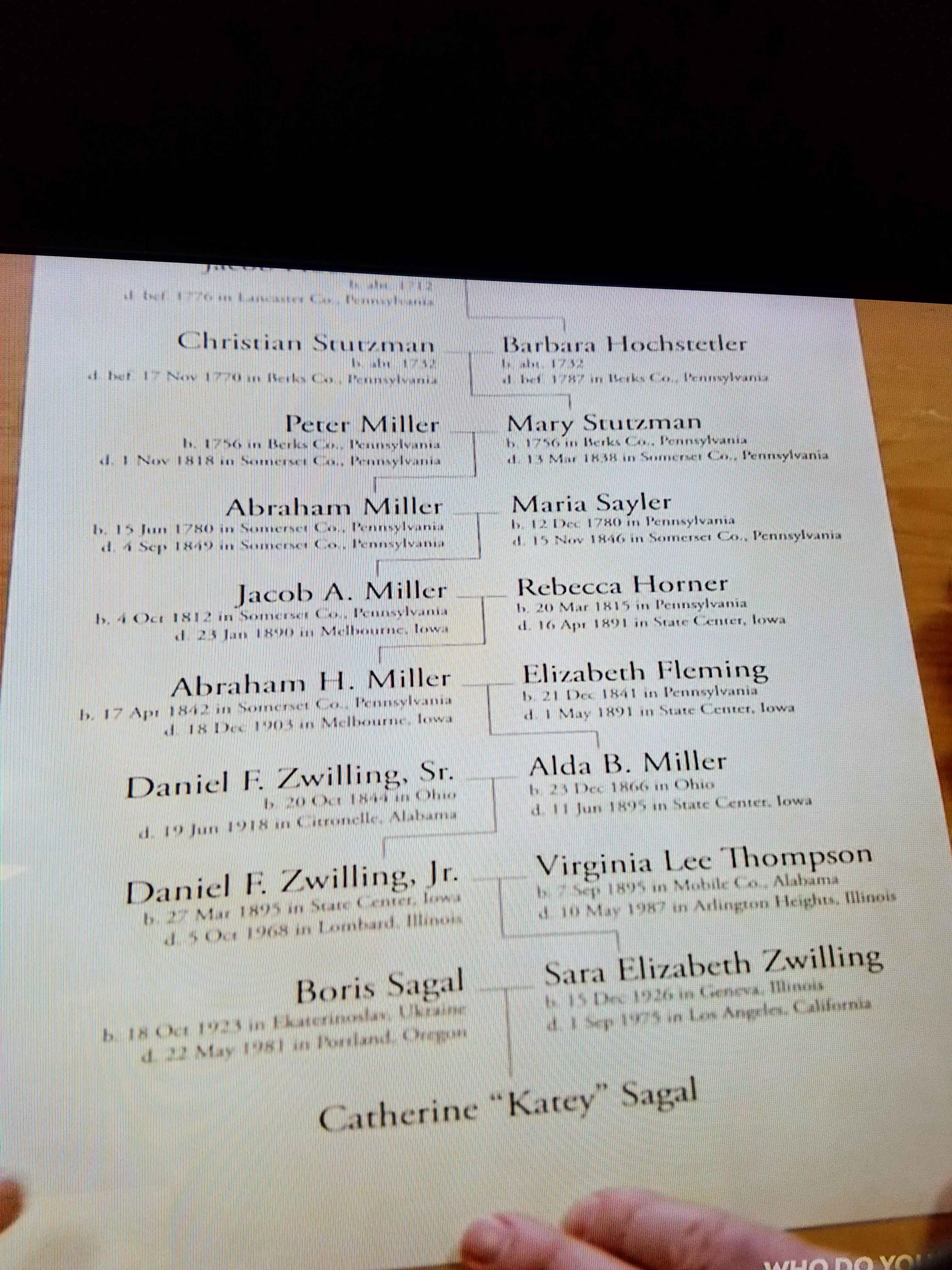 Welcome Katey Sagal Katey on Facebook Thanks to Who Do You Think You Are? we recognize a new family member. Katey's 4th great grandmother was Maria Sayler/Seiler found in the Descendants of Brarbara Hochsteder # 5400 page 388 Amish and Amish Mennnonite Genealogies 2ed SL418 page 466 Descendants of Saylor Hill #13 page 46 I think this will be one of the most watched segments because of the large number of her living relatives. Katey's Sayler/Seiler line is in our Saylor DNA Project Group 1. |