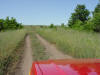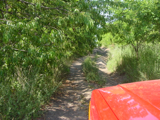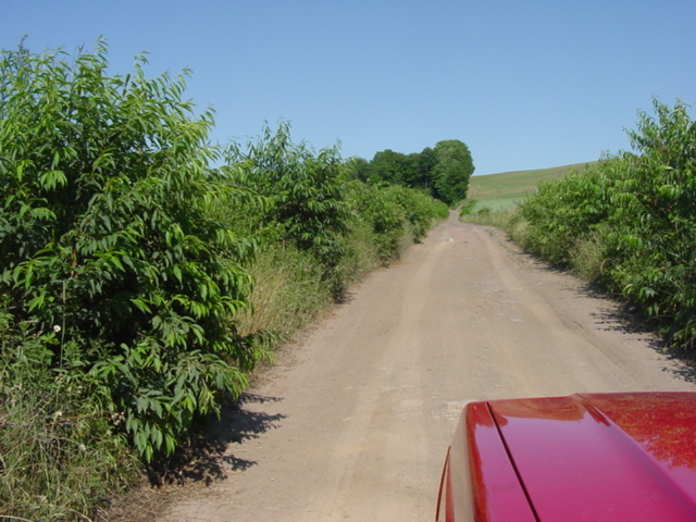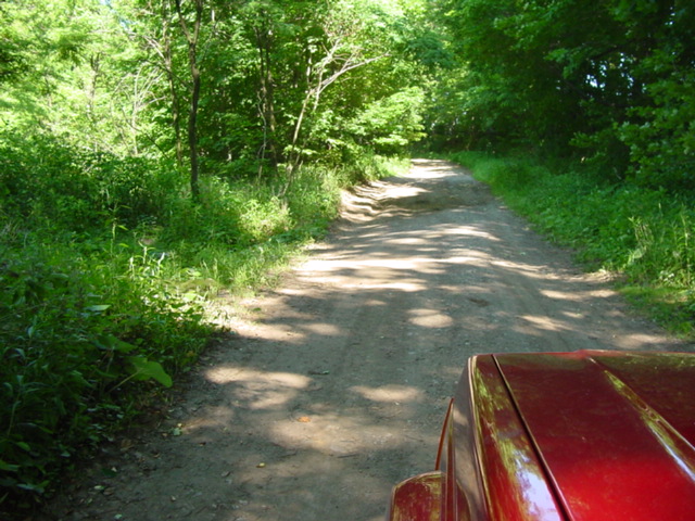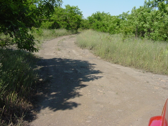 Continue to the tallest trees on the right. When you start down the slope of the second hill - stop. You can park off the roadway near the trees. The site is easy to miss.